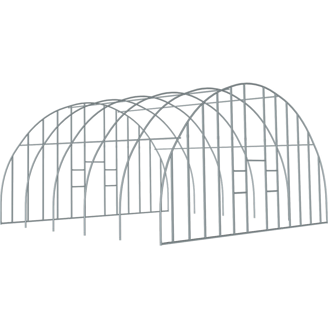 • Steel tube greenhouse arch or round rib frame at 4 feet apart