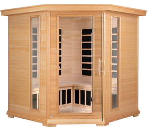 Vienna, Corner Spacious Infrared Sauna Canadian Hemlock Ultra Low EMF, 12 Heaters, 4-5 Persons