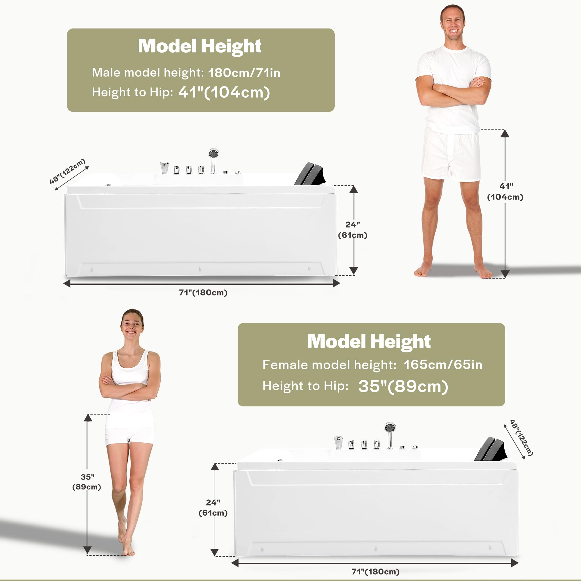 - The generous 72 in. length good for two person bathing, gives plenty of room to stretch and relax. The timeless, classic double ended design offers comfort with its lumbar arch to support your body.