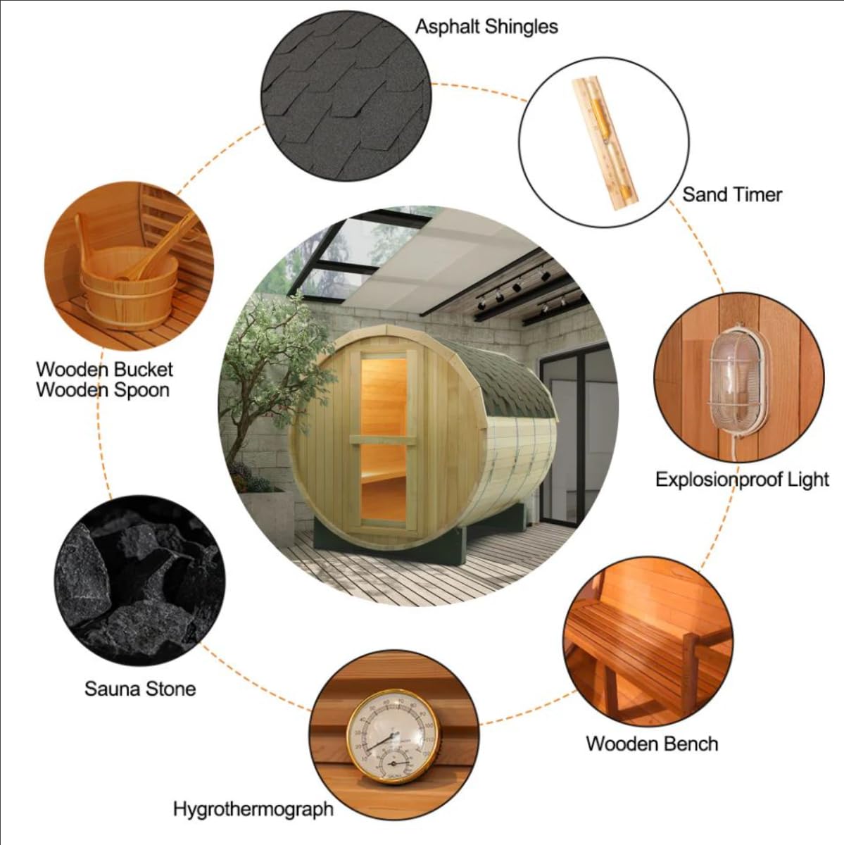 Outdoor Barrel Steam Sauna, Canadian Red Cedar for 3-4 Person