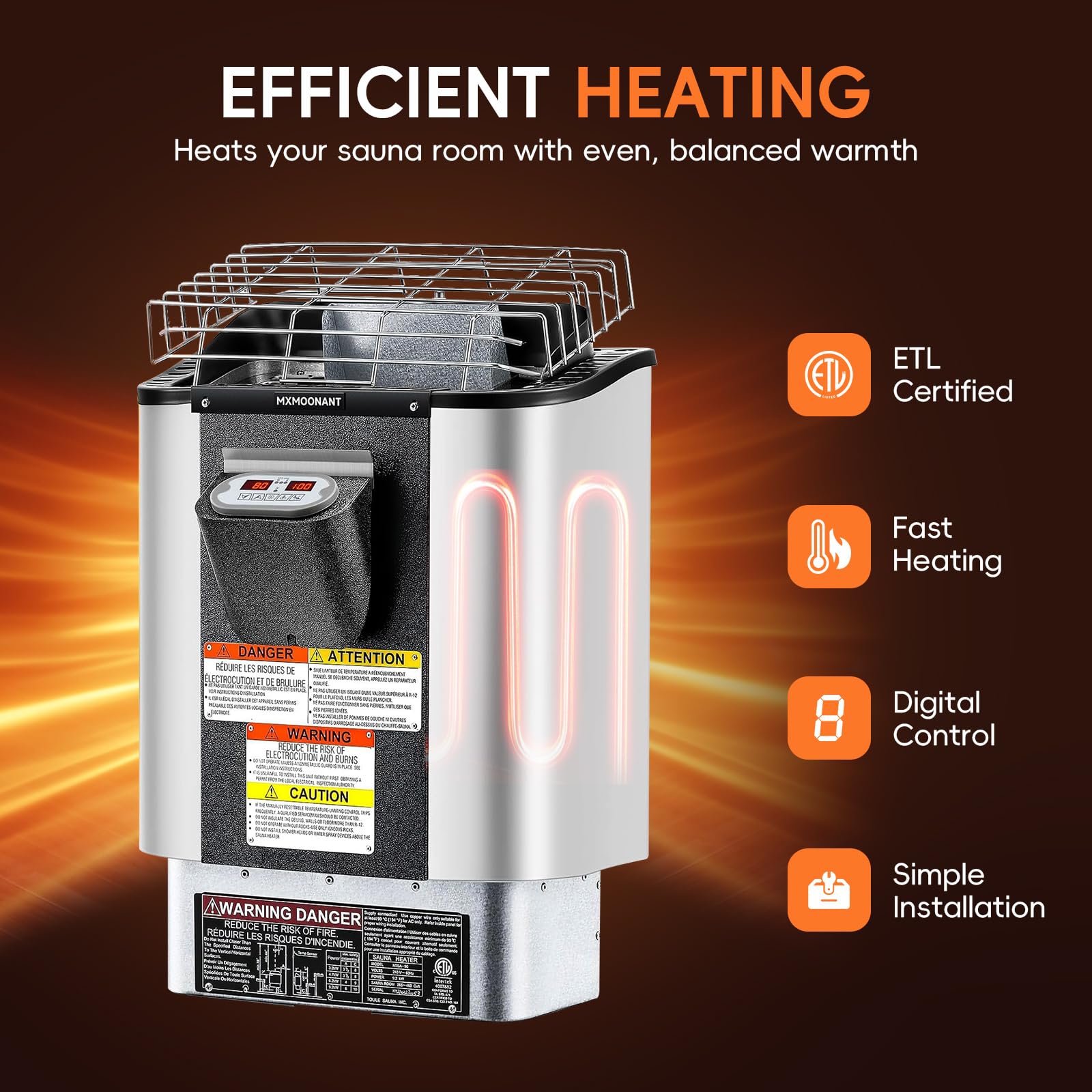 Efficient Heating: Our electric steam sauna is equipped with a powerful 4.5kw ETL certified TOULE sauna stove. 220V. With plenty of heat supplied to the spacious home sauna, and the barrels kept warm, everyone gained strength from the sauna