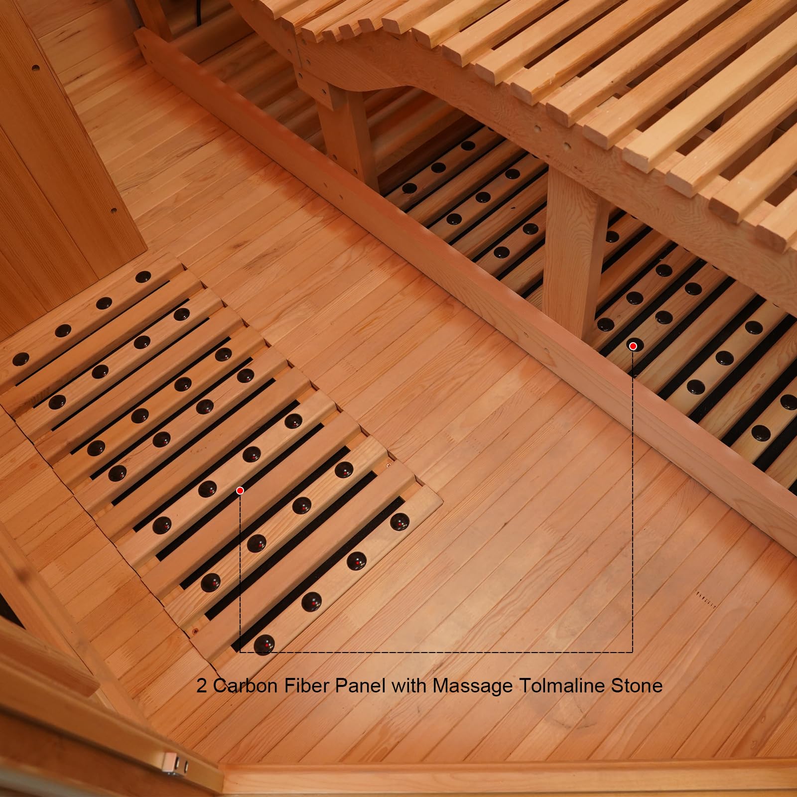 Fast Heating: Surround your body with heat being delivered by 4 carbon heating panels and 4 pure ceramic tubes, the far-infrared bio-spectrum emitted is close to the body's own wavelength and is more easily absorbed, the bottom of the sauna room is equipped with tourmaline stones, allowing you to absorb minerals while enjoying the sauna